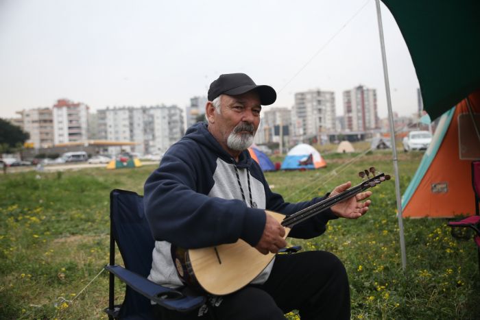 Kahramanmaraş'a bağlı Pazarcılık ve Elbistan'da 6 Şubat'ta meydana gelen 2 büyük depremde 11 ilde büyük yıkımlar olurken, binlerce vatandaş hayatını kaybetti. Evsiz kalan çok sayıda depremzede ise çevre illere taşınmak zorunda kaldı. Mersin'e de 200 binin üzerinde depremzede gelirken, günlerini farklı etkinlikler yaparak geçirmeye çalışıyorlar. Merkez Mezitli ilçesinde bulunan boş bir araziye çadır kuran 70 yaşındaki Orhan Asker'de saz çalarak günlerini geçirmeye çalışıyor.