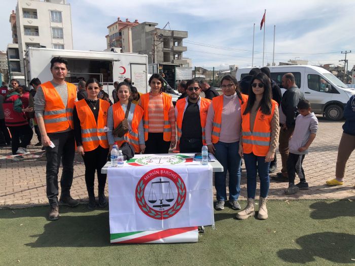 Mersin Barosu Deprem Komisyonu üyesi avukatlar 7-11 Mart 2023 tarihleri arasında Adıyaman’da stant açarak, depremzedelere hukuki destek ve insani yardım desteği verdi. |