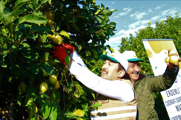 Türkiye’nin yaş sebze ve meyve üretiminde ilk sıralarda yer alan Mersin’in Erdemli ilçesinde önemli bir geçim kaynağı olan limonda erkenci cins mayerden sonra depoluk olan ilçenin coğrafi tescilli ürünü lamasın da yoğun hasadı için start verildi. Ülkedeki limon üretiminin yüzde 55’inin, lamas cinsinde ise yüzde 65'inin yapıldığı Erdemli’de bu sene ortalama 800 bin ton ürün beklendiği belirtildi. Hem iç piyasaya hem de ihracata giden lamas limonunun ülke ekonomisine de önemli miktarda döviz getirisi sağladığı ifade edilirken, bahçede 7-8 TL civarında alıcı bulması üreticisinin yüzünü güldürdü. Mersin Valisi Ali Hamza Pehlivan da yoğun hasat dönemi nedeniyle eline makası aldı, işçilerle hasat yaptı. Hasat sonrası işçilerle birlikte küfe de taşıyan Vali Pehlivan, üretim ile ilgili bilgi verdi.