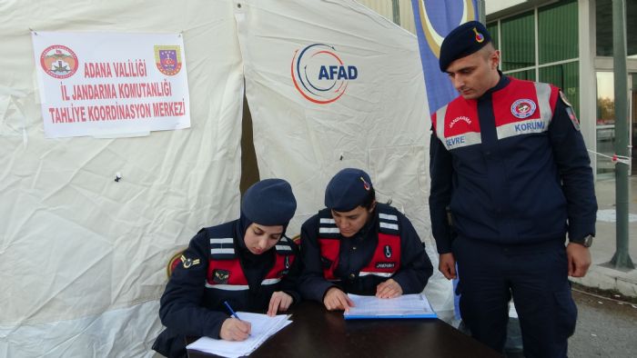 Adana Uluslararası Fuar Alanı ve Kongre Merkezi'nin depremzede vatandaşların güvenle kalacakları ortama dönüştürülmesi ile yaklaşık 8 bin kişinin bulunduğu alanda jandarma ekipleri, Adana’dan ayrılmak isteyen, Hatay, Kahramanmaraş, Elbistan, Osmaniye’den Adana’ya gelen depremzedelerin bölgeden tahliye talepleri için mesai yapıyor.