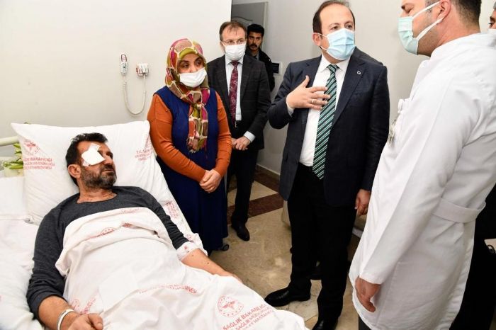 Vali Pehlivan yaralı polisi hastanede ziyaret etti