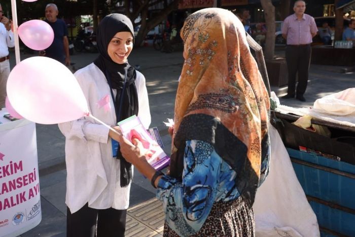 Mersin’in merkez ilçe Akdeniz Belediyesi ile İlçe Sağlık Müdürlüğü iş birliğinde, ’1-31 Ekim Meme Kanseri Farkındalık Ayı’ kapsamında Mersin’in en yoğun noktalarından Kuvayi Milliye